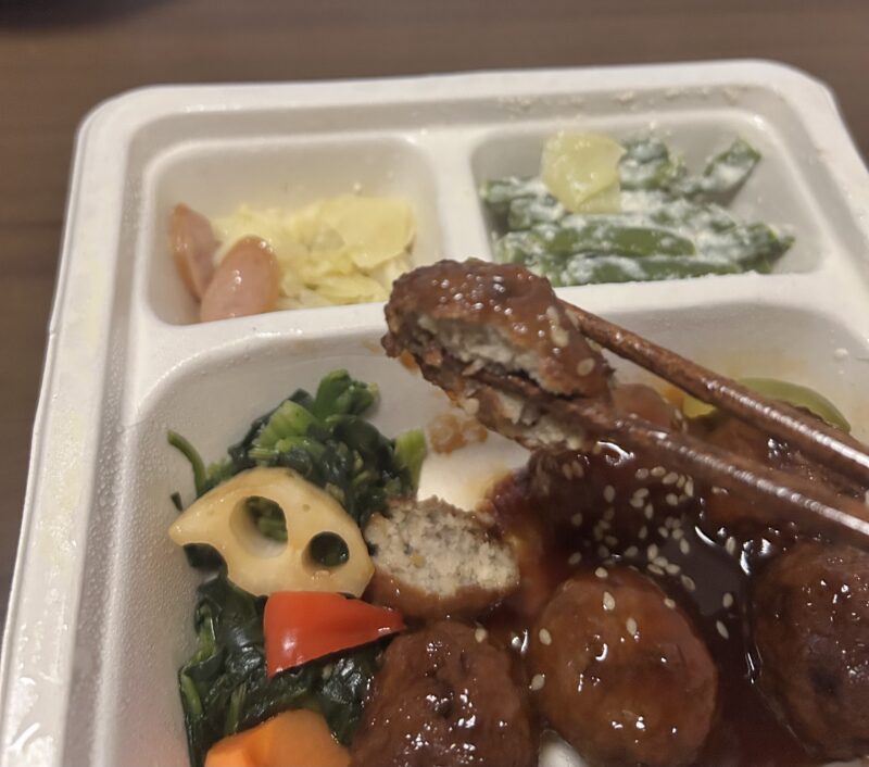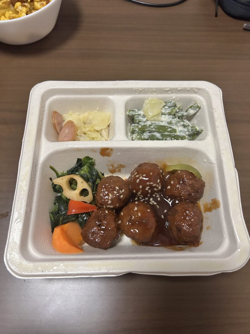 男性だと腹8分目くらいの量なので、ミートボールでご飯がすすむのでご飯多めでいきましょう。