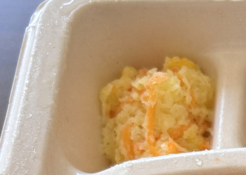まずは副菜1のさつまいもコーンは、甘くてスイートポテトみたいな感じで美味しかったです。